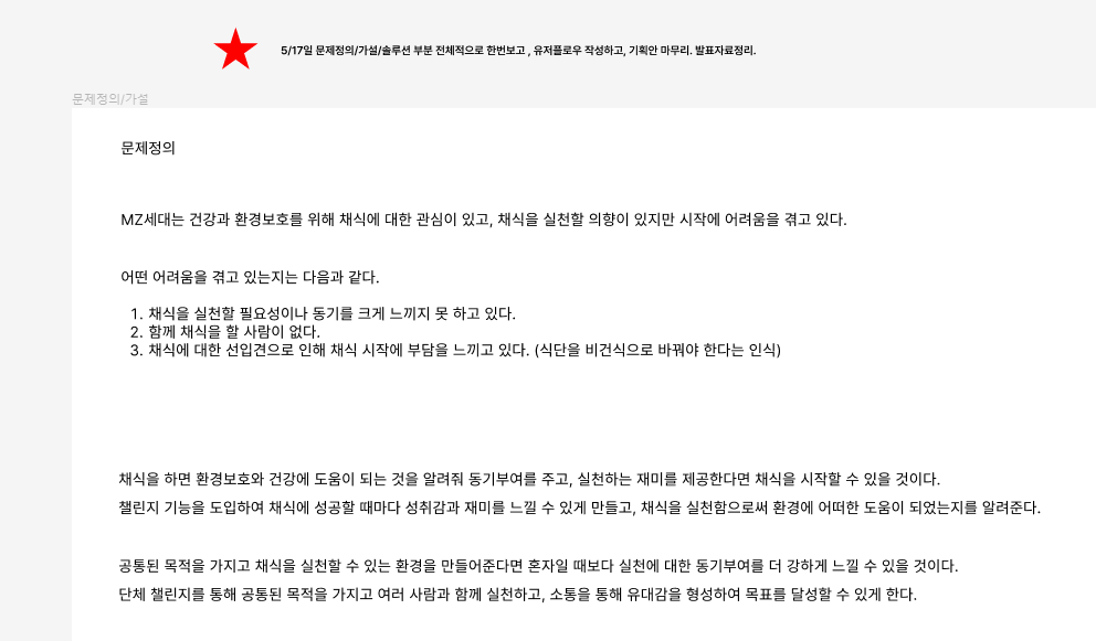 그런데 오늘 또 멘토링에서 문제정의에서부터 가설까지는 좋아도, 솔루션 도출을 미리 정의해 놓은 탓인지