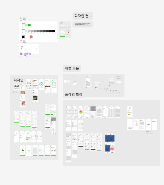와이어프레임에서도 어느정도 튜터님 말씀대로 화면끼리 나누고 겹치는 것은 분리하고, 패턴으로 모음을 레이어해놨더니