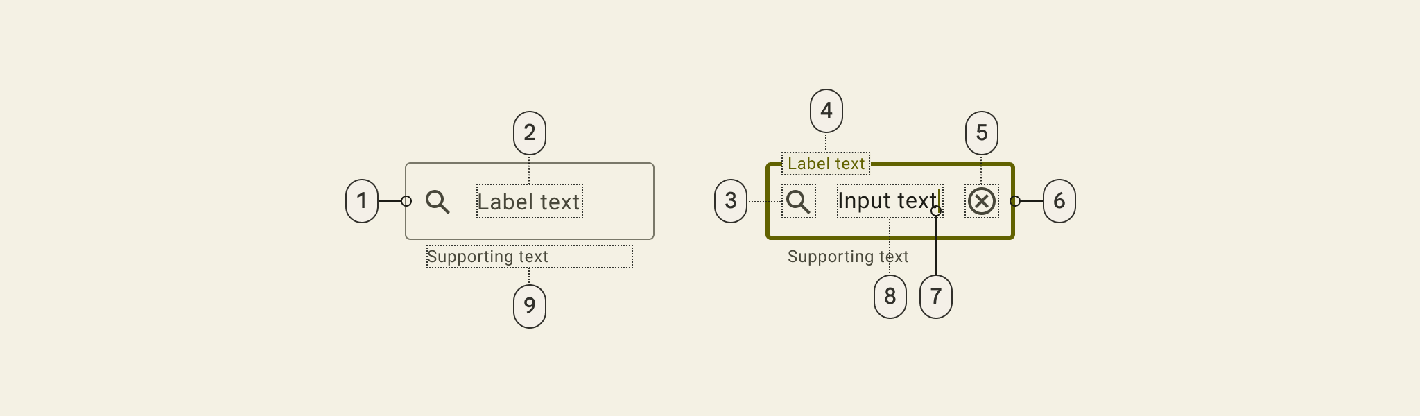 두 가지 유형의 텍스트 필드 모두 컨테이너를 사용하여 상호 작용에 대한 시각적 단서를 제공하고 동일한 기능을 제공합니다.