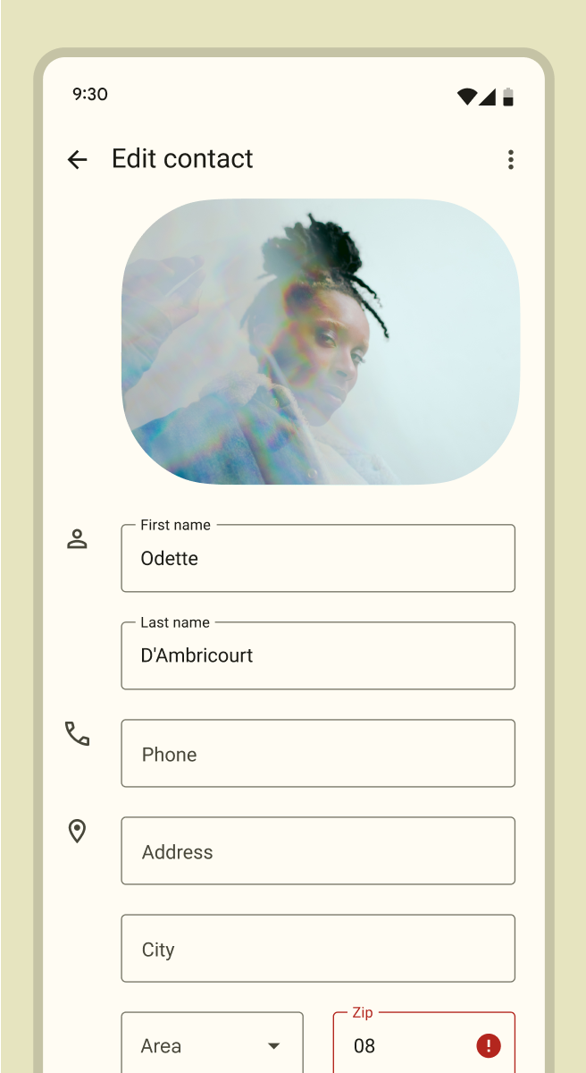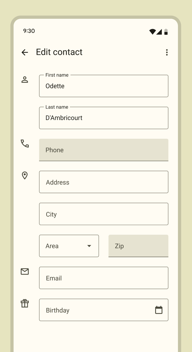 연락처나 결제 정보를 입력하는 등 누군가가 UI에 텍스트를 입력해야 하는 경우 텍스트 필드를 사용하세요.
