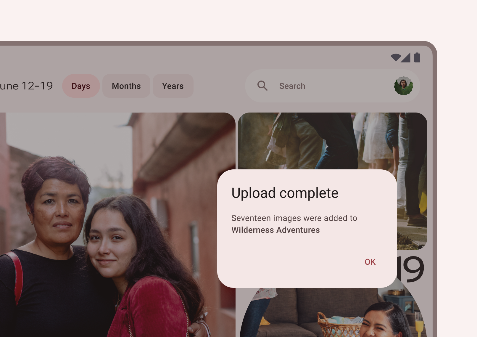 우선순위가 낮거나 중간인 정보에는 대화상자를 사용하지 마십시오. 대신 자동으로 무시하거나 사라질 수 있는 스낵바를 사용하십시오.