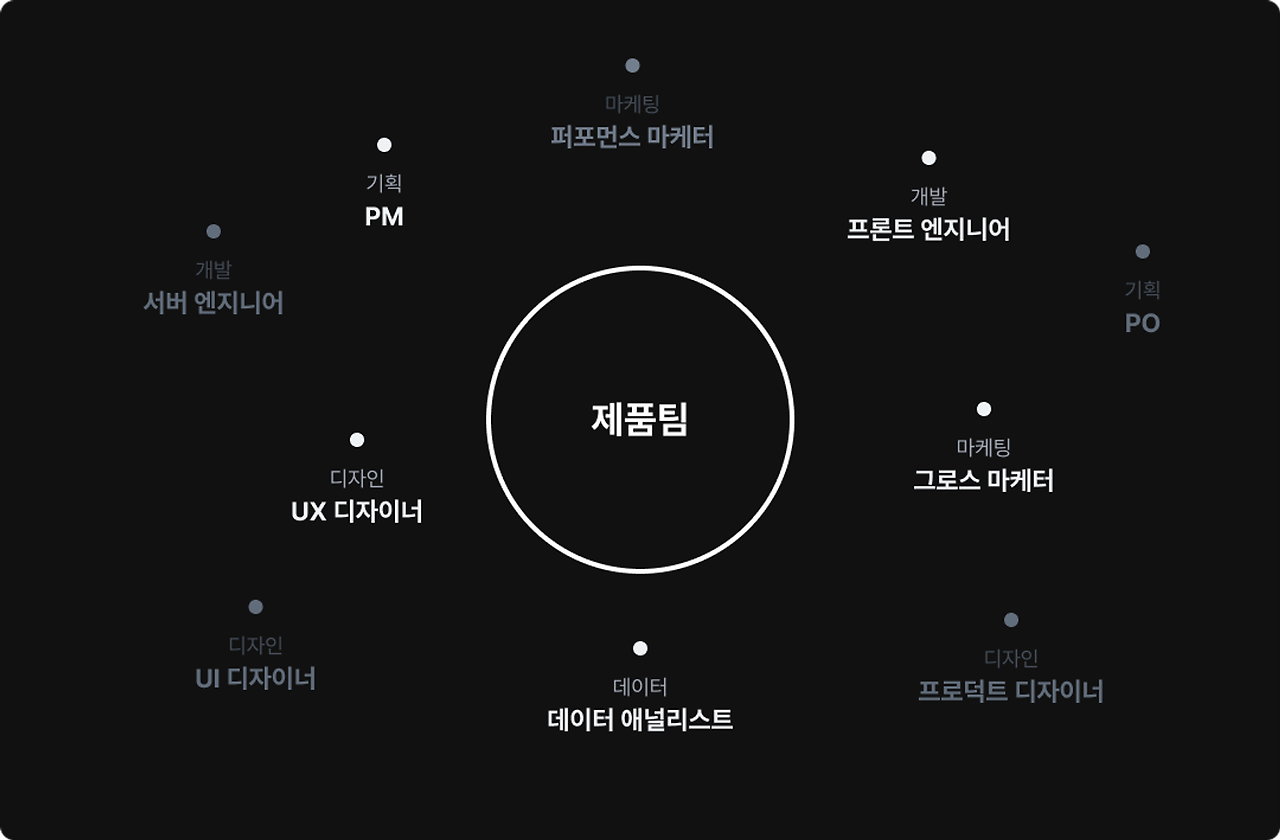 - 회사에 따라 제품팀에 데이터 애널리스트, 마케터, BO(Business Operator) 등이 포함될 수 있어요.