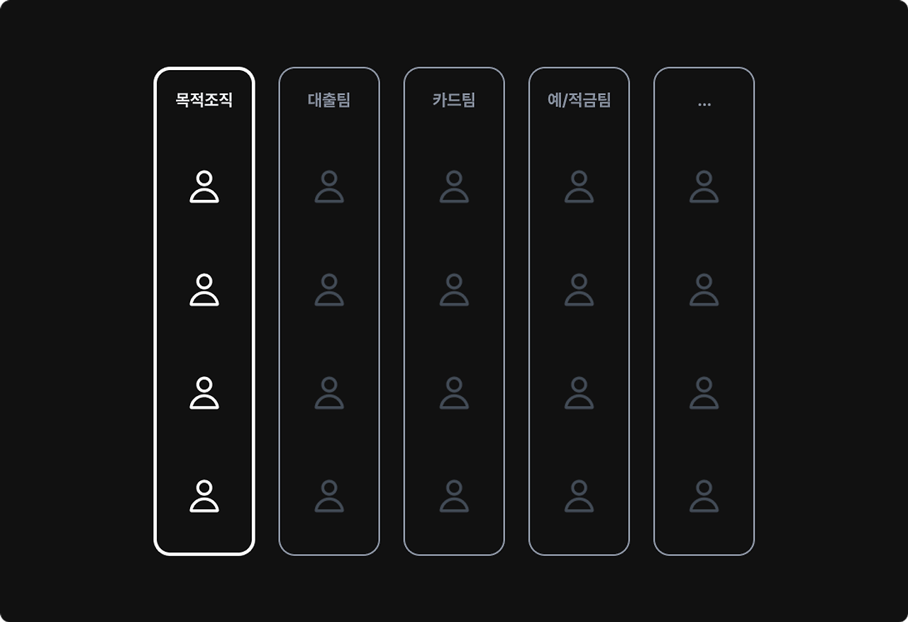 핀테크 - 금융상품,기능별로 나눠진 조직대출,카드,예/적금팀