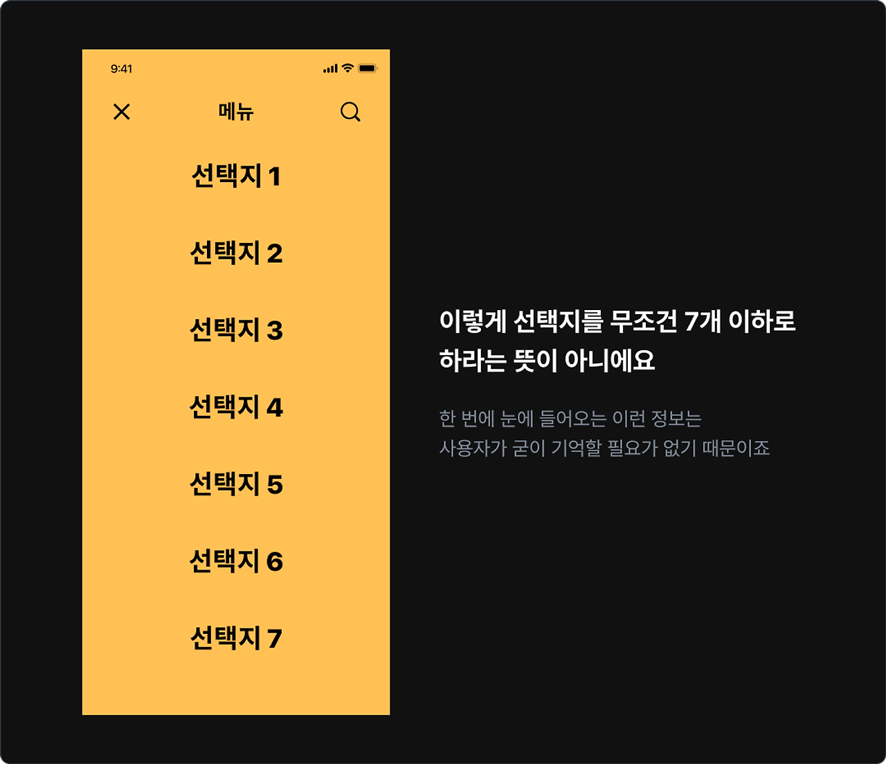 잠깐! 메뉴나 항목을 무조건 7개로 제한하라는 뜻이 아니에요.