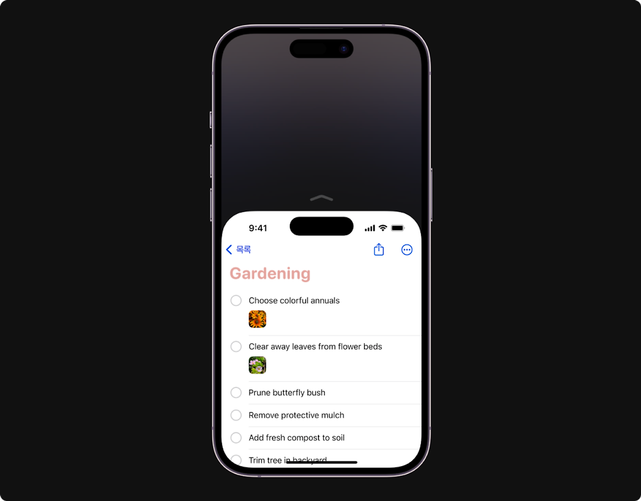 - 아이폰을 한 손으로 사용 중인 경우에도 엄지손가락으로 모든 화면에 손쉽게 닿을 수 있도록 돕습니다.