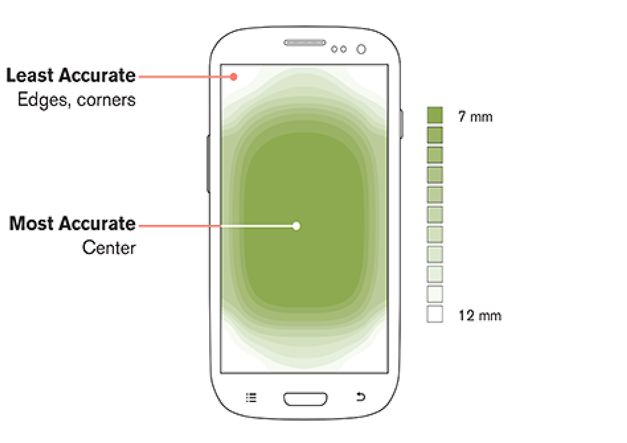 - 터치해야 하는 대상의 크기는 사용자가 정확하게 선택할 수 있을 만큼 충분히 커야 합니다.