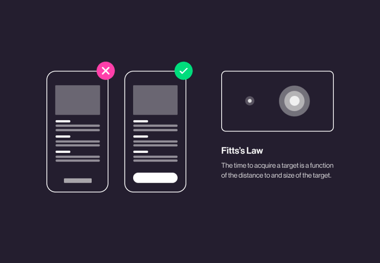 - 터치 대상에 도달하는 시간은 거리와 크기와 함수 관계에 있다.