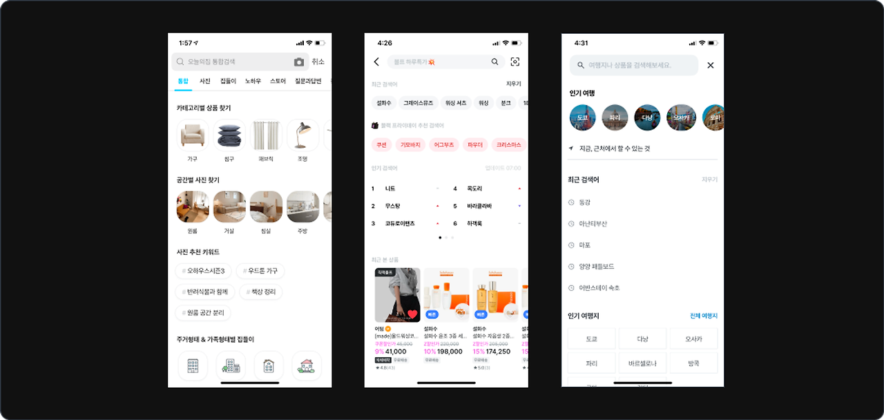 - 검색 화면에서는 키워드 검색을 넘어 전반적인 정보의 탐색이 이뤄지는 공간이기도 합니다.