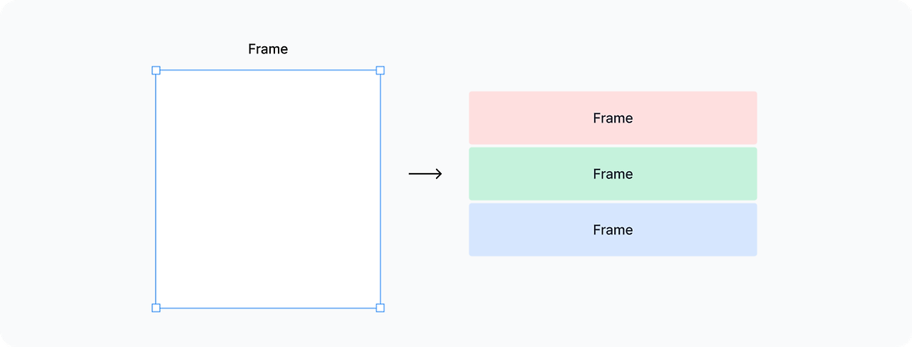 - 프레임은 코드 블록을 만드는 기능이고, 실제 코드로 바꿀 수 있는 개체예요.