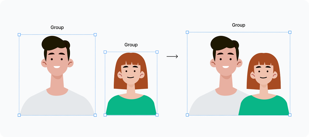 여러 개체를 조정하거나 디자인을 정리하는 등 편의를 위해 여러 개체를 하나로 담는 기능이에요.