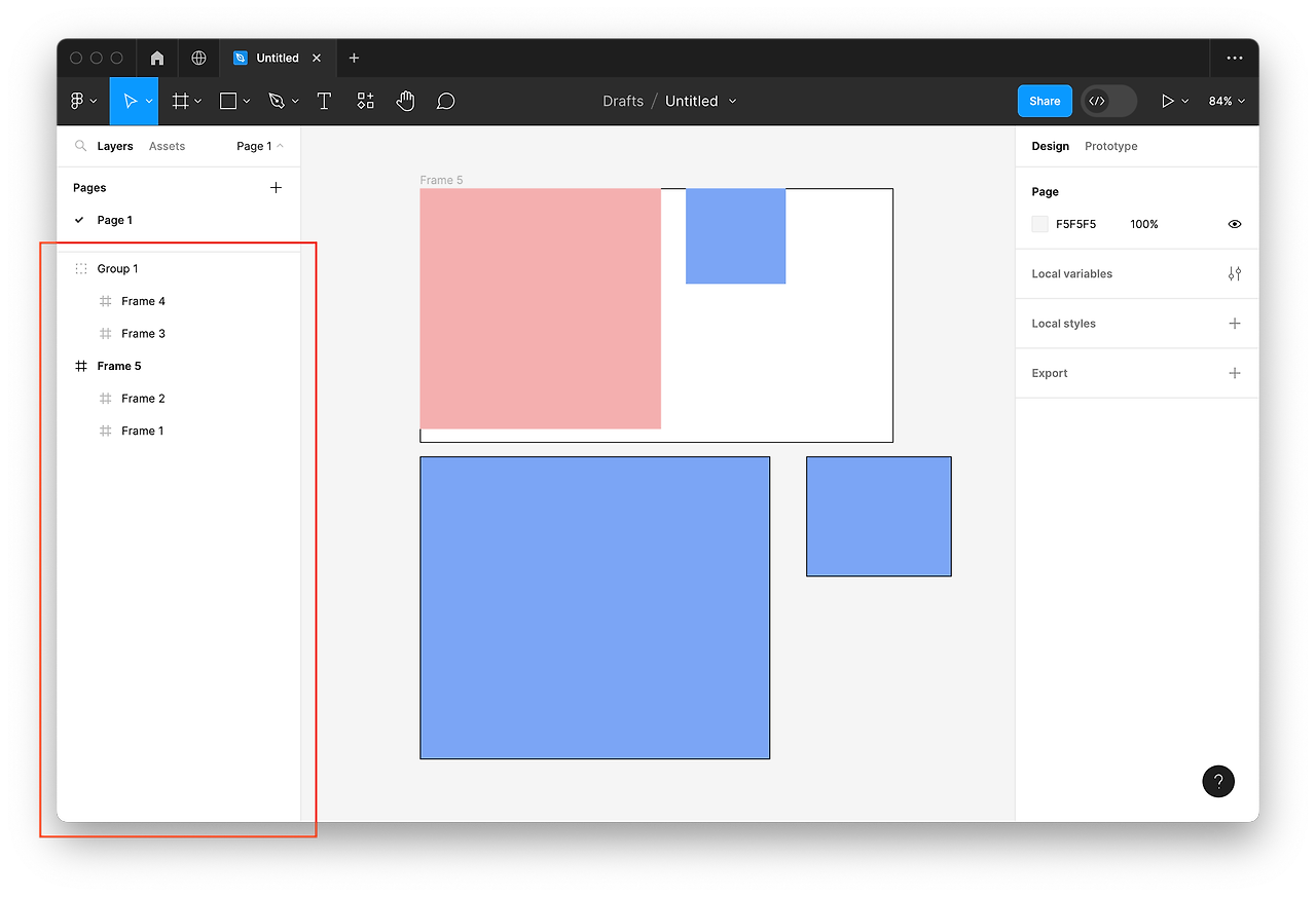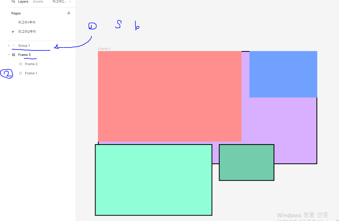- Frame 5와 Group 1이 각각 Frame 1과 2, 3과 4를 감싸고 있기 때문이에요.